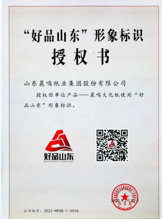 5月17日,2023“中國品牌日”(山東)活動(dòng)在日照市舉辦,晨鳴紙業(yè)作為首批入選的223家“好品山東”品牌之一,獲授“好品山東”形象標識授權書(shū)。